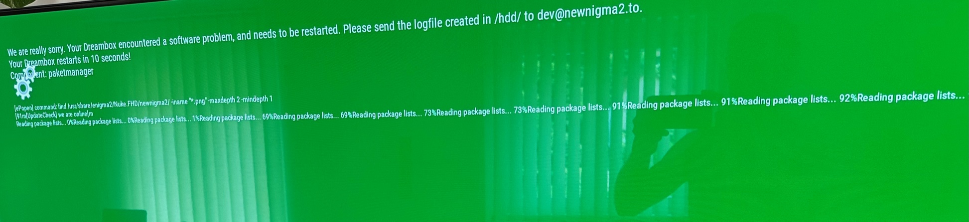 4 23. Juni 2023, 07:07 da gibt es ein Problem mit dem Mediaportal feed Quellcode SystemError: E:Encountered a section with no Package: header, E:Problem with MergeList /var/lib/apt/lists/apt.fury.io_mediaportal_._Packages, E:The package lists or status file could not be parsed or opened Veruch mal per telnet/ssh mdkir /var/lib/apt/lists_old mv /var/lib/apt/lists/*mediaportal* /var/lib/apt/lists_old/ apt-get clean apt-get update systemctl restart enigma2 Wenn das nicht hilft, kannst du wieder all Rückgängig machen und die Dateien wieder an den ursprünglichen Ort schieben mv /var/lib/apt/lists_old/* /var/lib/apt/lists/ rmdir /var/lib/apt/lists_old/ Wenn die Box wieder hochkommt, kannst du die alten listen bzw. den Odner /var/lib/apt/lists_old/ löschen Gruß Fred Die Dreambox ist tot, es lebe die Dreambox ¯\_(ツ)_/¯