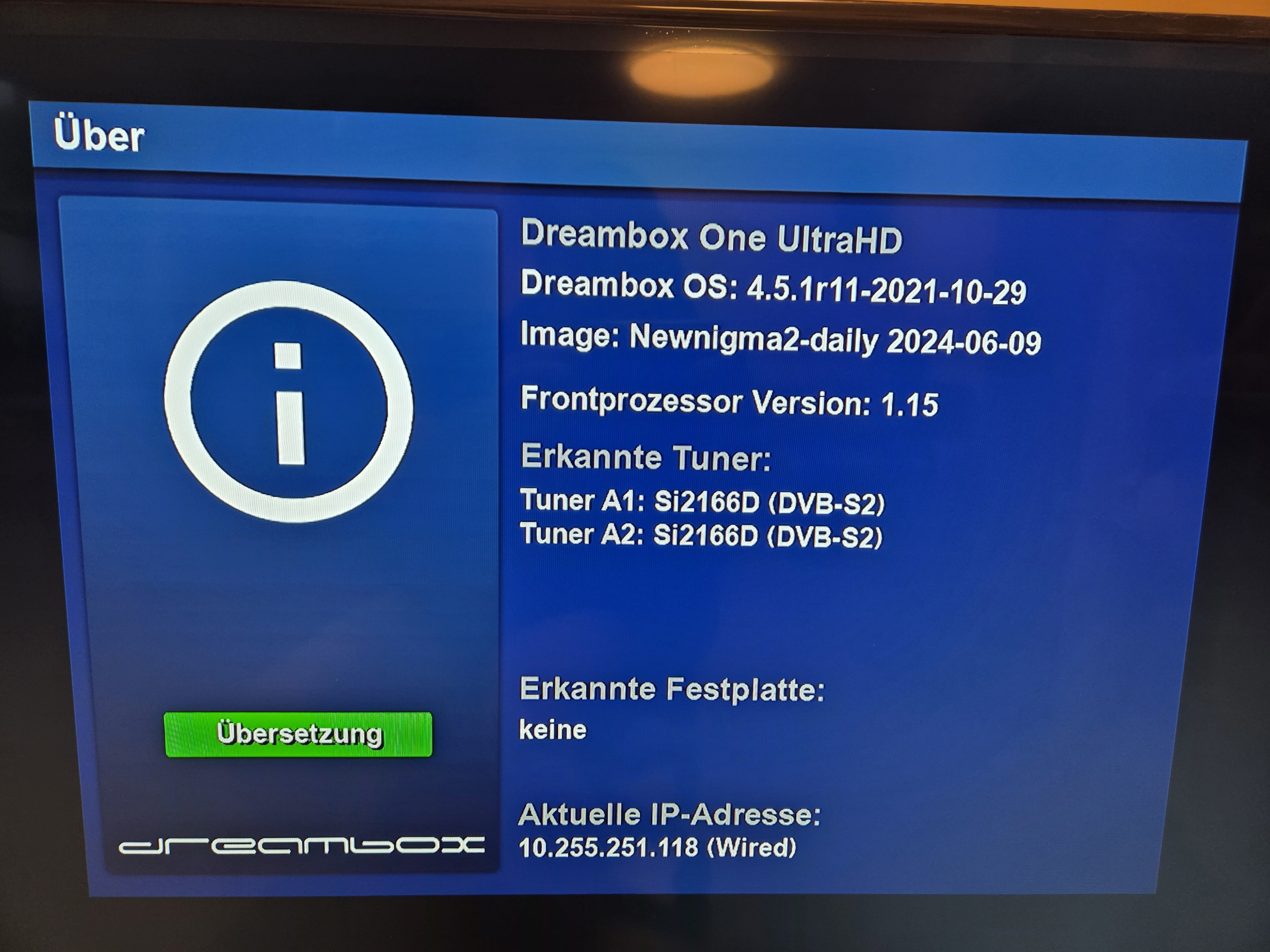Wenn ich die DreamboxOne Neu Flashe mit dem newnigma2-deb-weekly-OE2.6-dreamone-09_06_2024.tar.xz von hier.