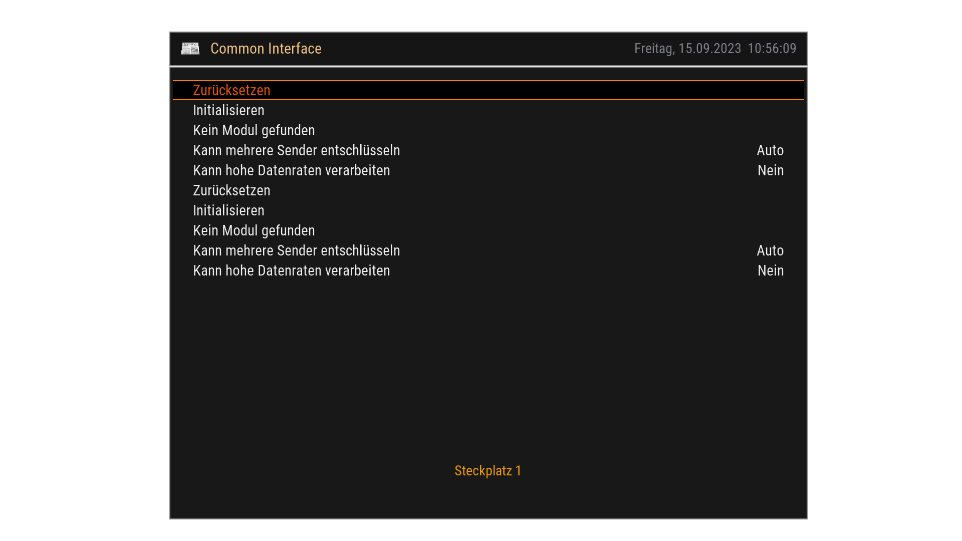 Die CI+-Karte stammt von meinem Dienstanbieter, aber ich habe auch eine T-Rex-Kamera, bei der das Menü ordnungsgemäß angezeigt wird, sodass die CI+-Steckplätze ordnungsgemäß funktionieren.