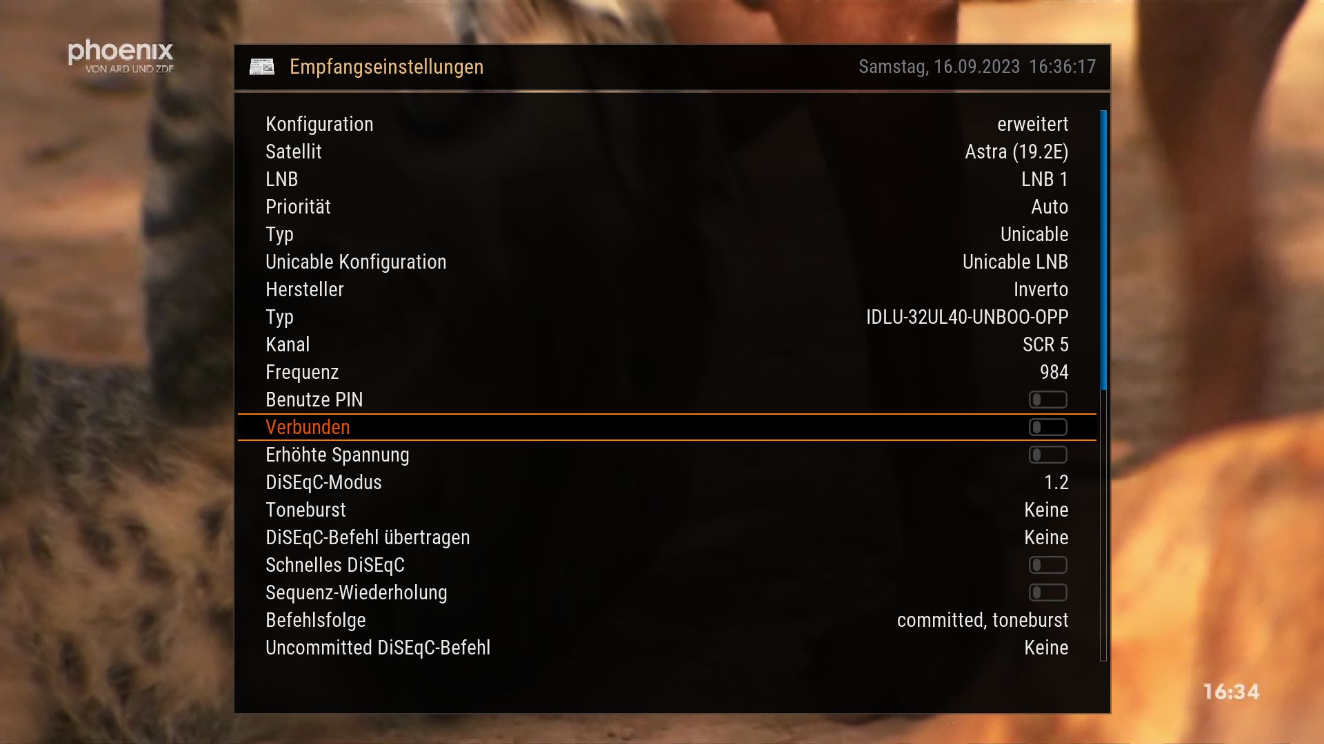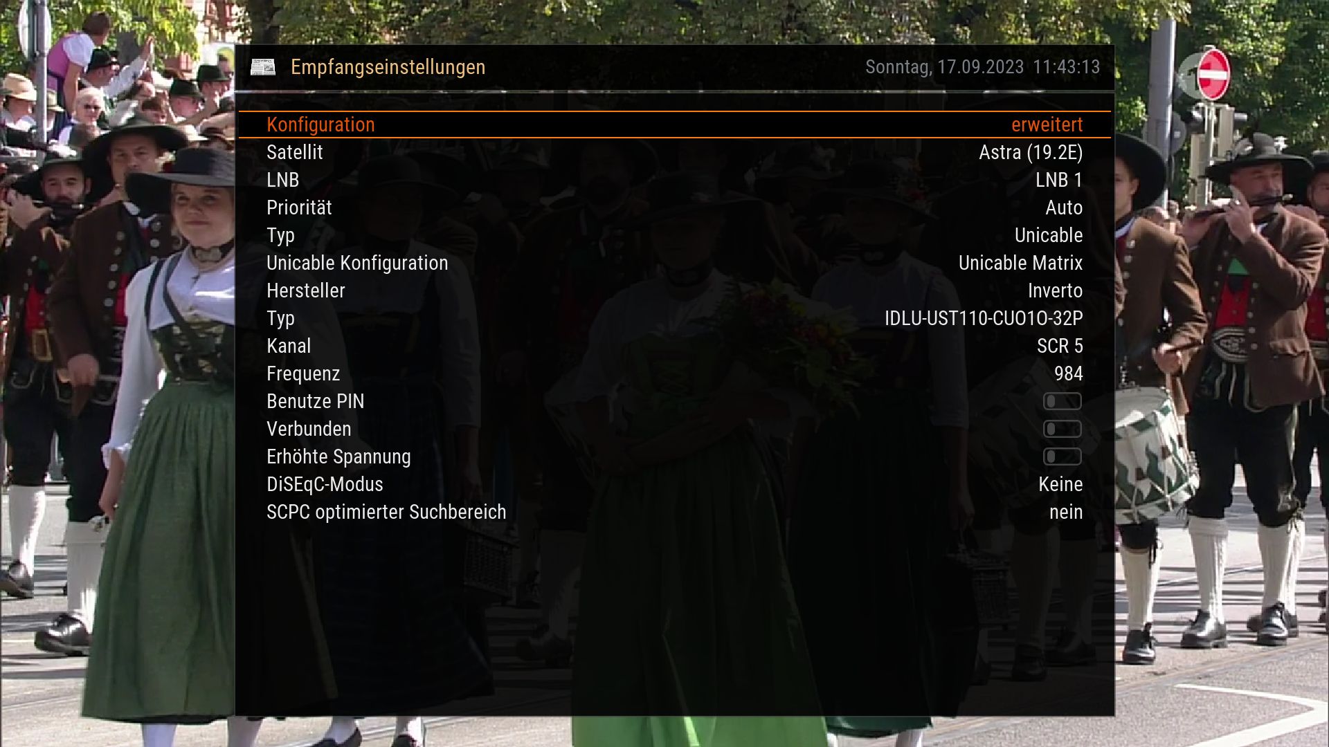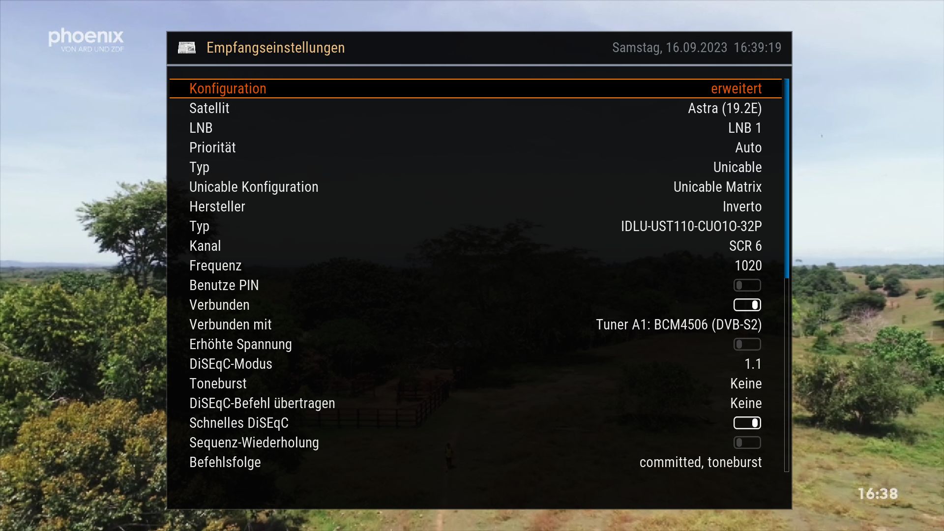 • Warum hast Du Diseq aktiviert? Das sollte normalerweise aus sein. ( wird nur bei Multi-Sat Empfang benötigt)