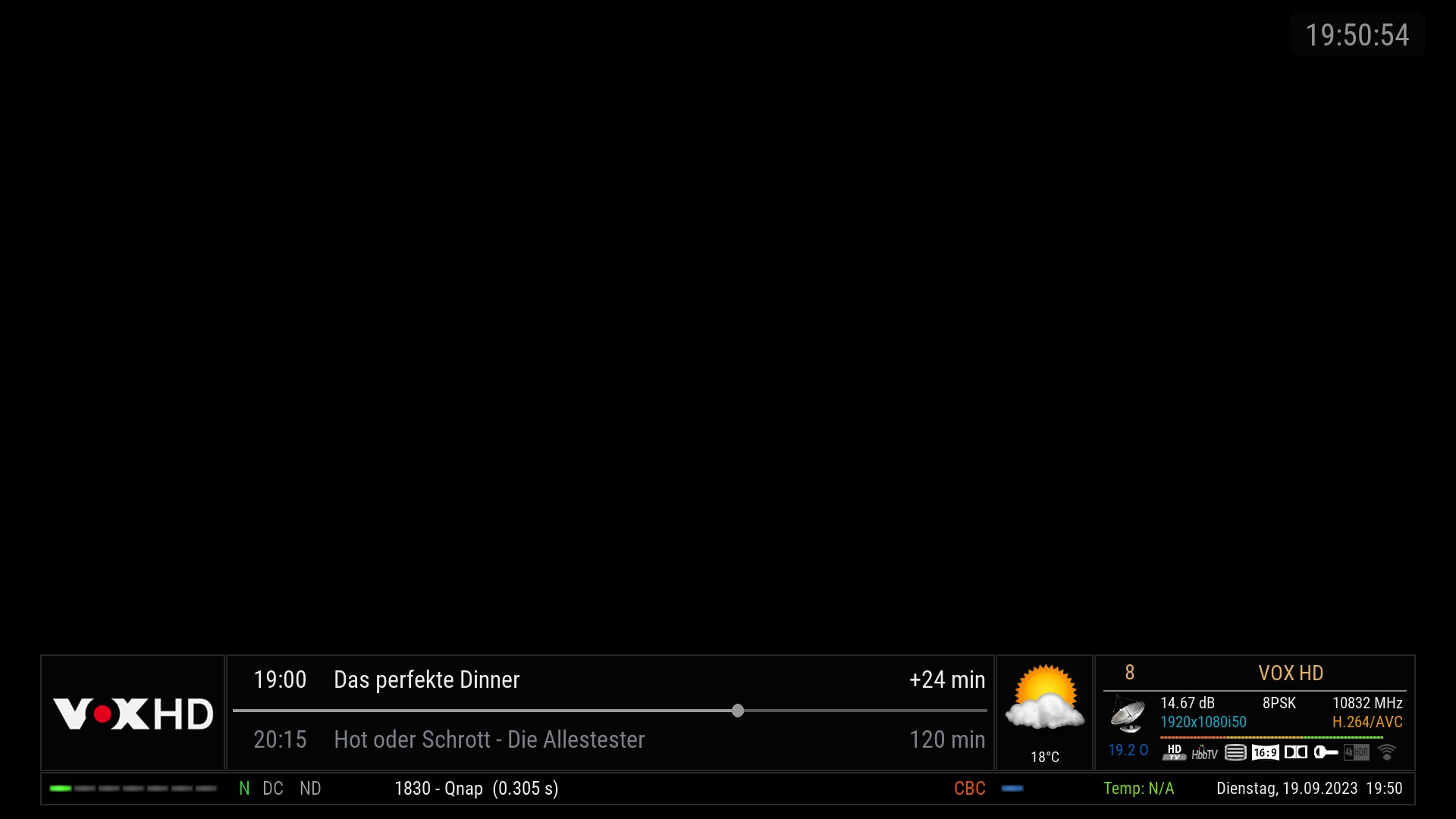 • Z. b. alle Skins, die die enigma2-plugin-extensions-merlinskinthemes beherrschen. Ich benutze den Nuke.Evo mit merlinskinthemes, die Tuner werden unten línks angezeigt.