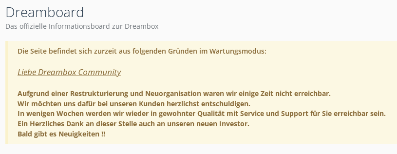 Mittlerweile sind sowohl dreambox.de und auch dreamboxupdate.com (somit auch die Feeds des Originalimages) wieder online.