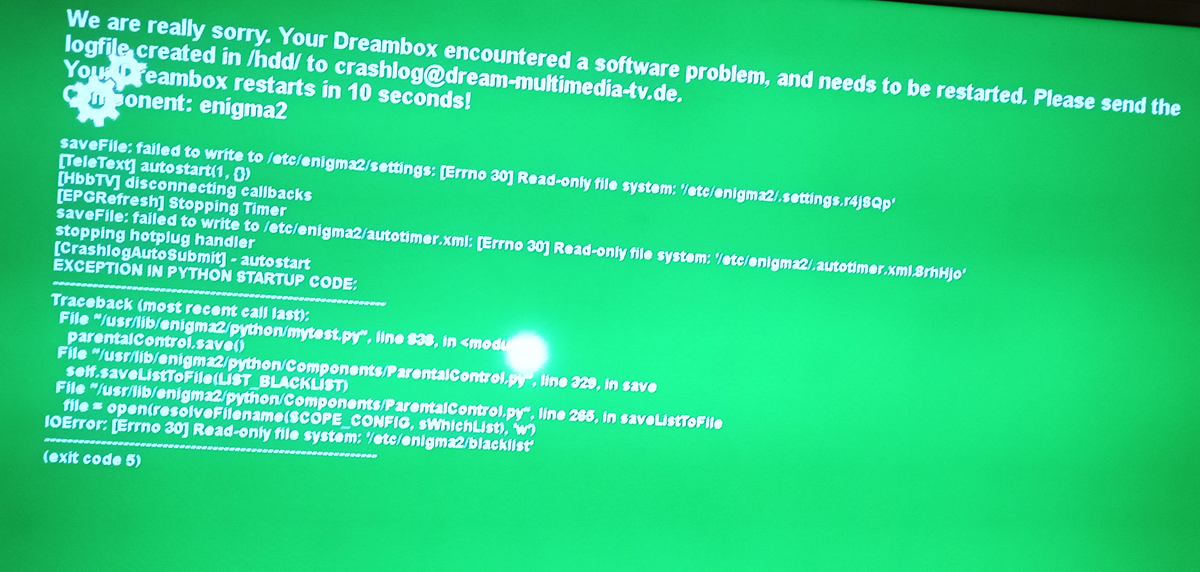 Kein Greenscreen mehr und ich kann auch wieder updaten. Und, der Autotimer geht auch wieder! -