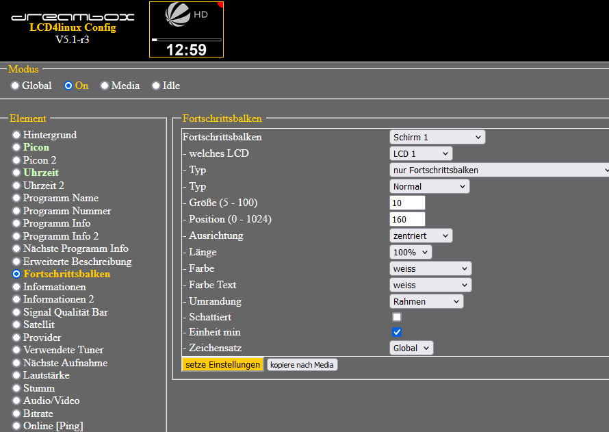 Im Reiter ON den Fortschrittsbalken auf ein.