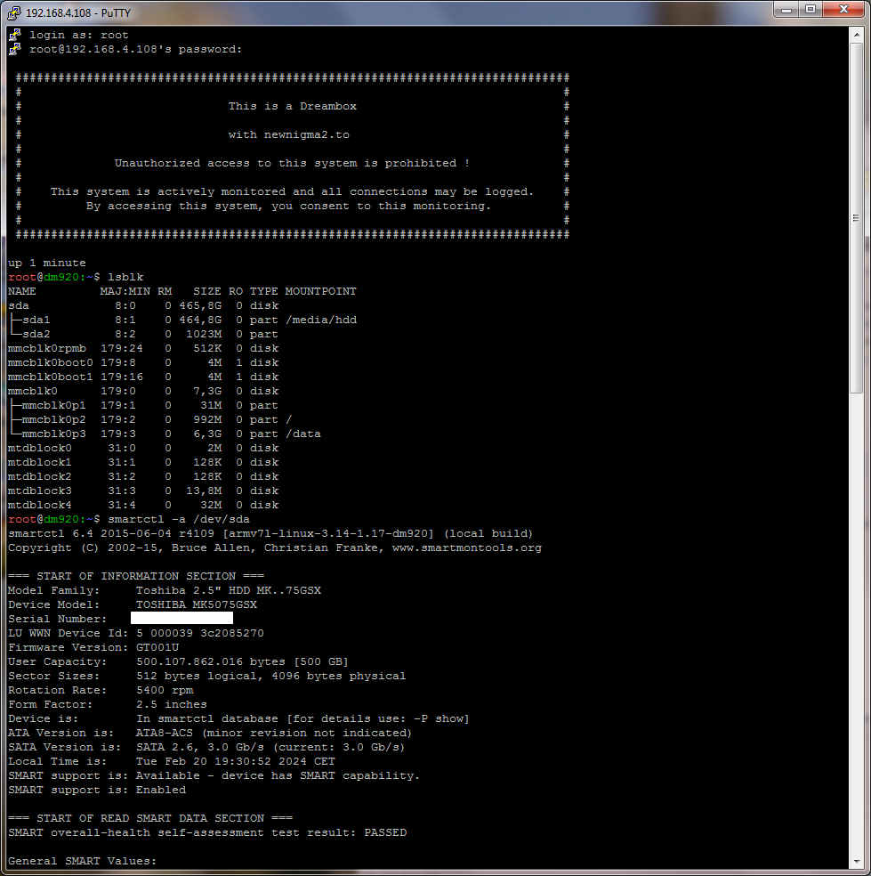Vor kurzem habe ich eine 920 von Bekannten mit OpenATV 7.0 und interner 2TB Seagate Barracuda zur Installation auf NN2 erhalten.