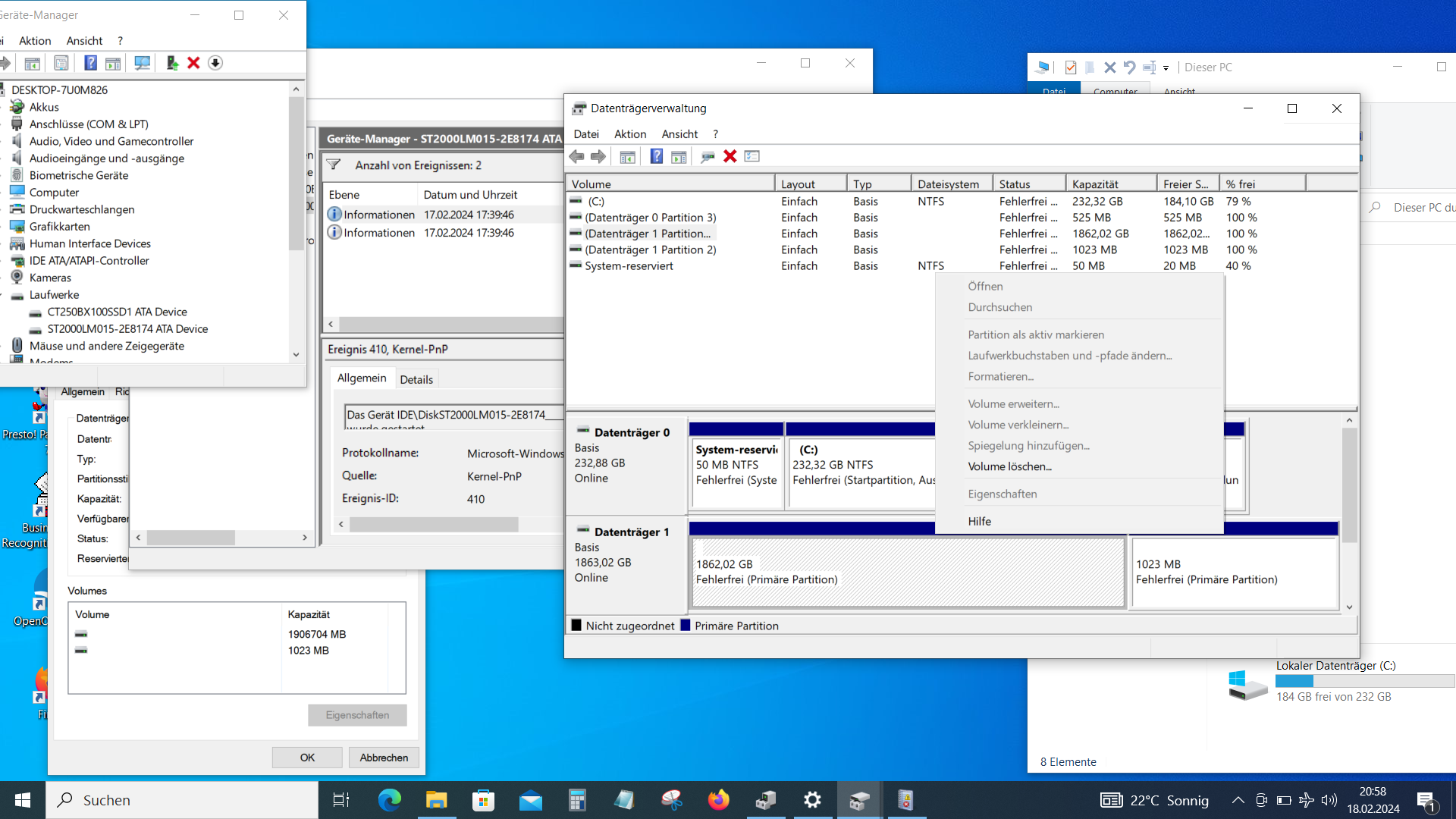 In der Datenträgerverwaltung ist sie Sichtbar als Datenträger 1 ohne Laufwerksbuchstaben und Dateisystem mit 2 Partitionen, 1,86 TB und 1GB, m.e. wie bei einer 920 üblich.