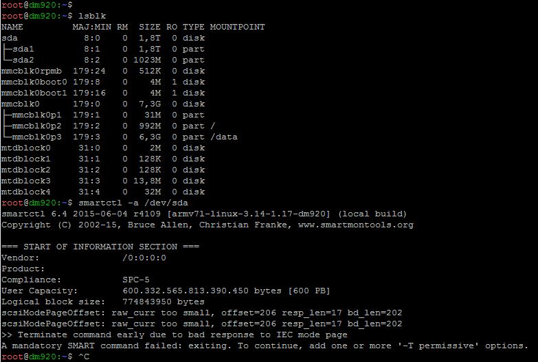 Vor kurzem habe ich eine 920 von Bekannten mit OpenATV 7.0 und interner 2TB Seagate Barracuda zur Installation auf NN2 erhalten.