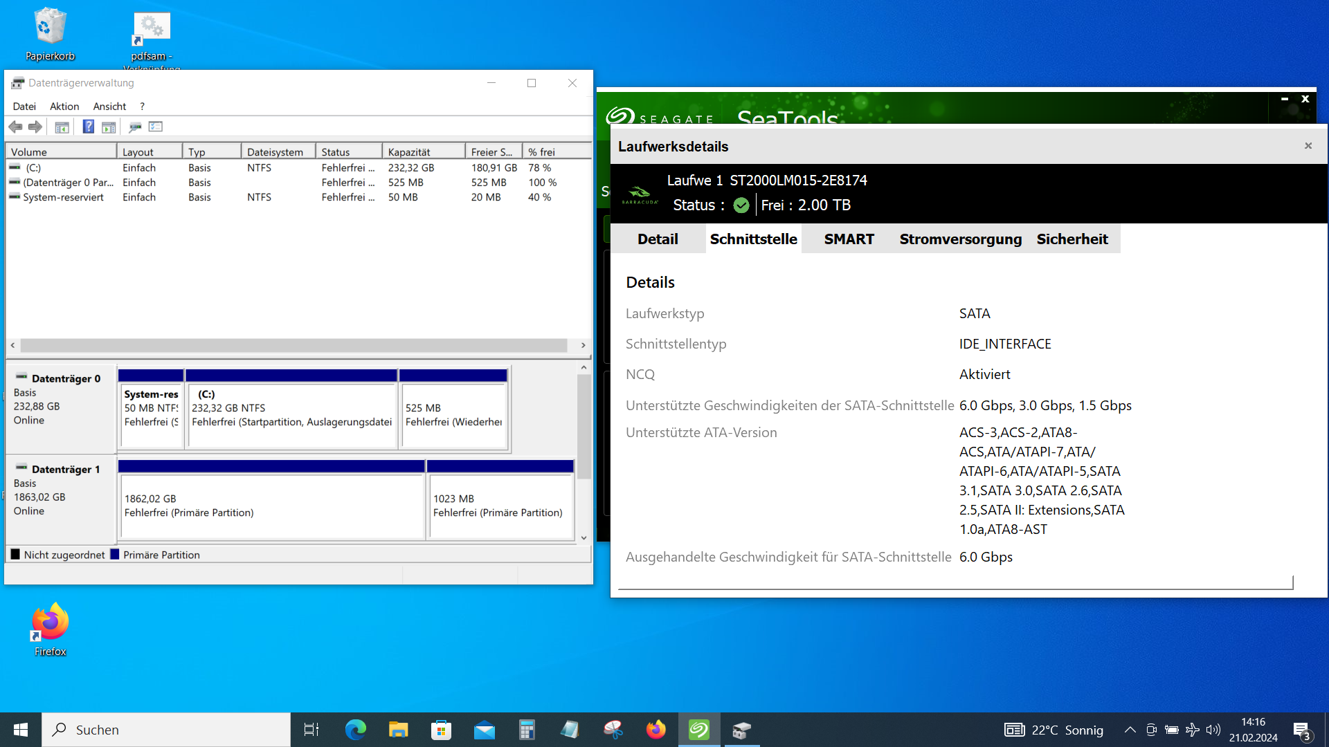 Ich würde die Platte mal in einem externen USB Laufwerk testen, ob Sie dann erkannt wird. Ob der smartctl command durchgelassen wird hängt vom USB Controller ab