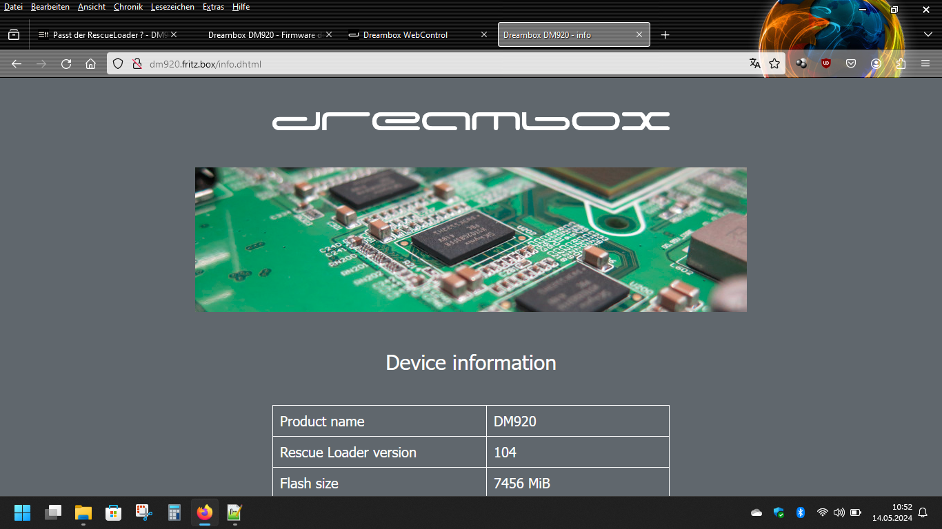 Sowohl für die dm900 als auch die dm920 gibt es das #104 Rescue Image und das ist das letzte auf dem Unstable Feed: