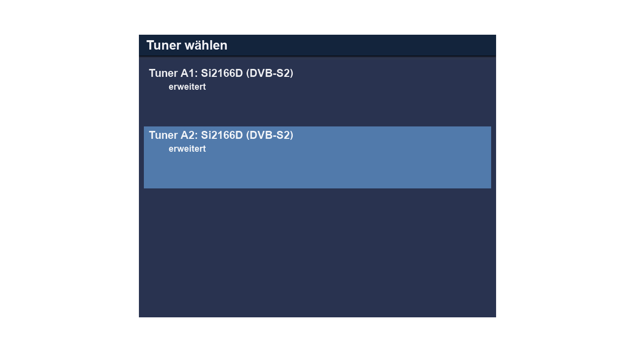 Nun habe ich ein zusätzliches Kabel von einem der 3 Legacy Ausgänge an A2 angeschlossen und auf Einzel-Modus konfiguriert. Damit arbeitet Tuner-A2 völlig normal. In dieser Konstellation ist auch das gleichzeitige Benutzen von A1 und A2 möglich, auch der automatische Wechsel der Tuner bei Timer-Aufnahmen. Daraus schließe ich, dass die A2-Hardware prinzipiell in Ordnung ist. Richtig? Verunsichert bin ich insbesondere deshalb, weil es schon mal ging.