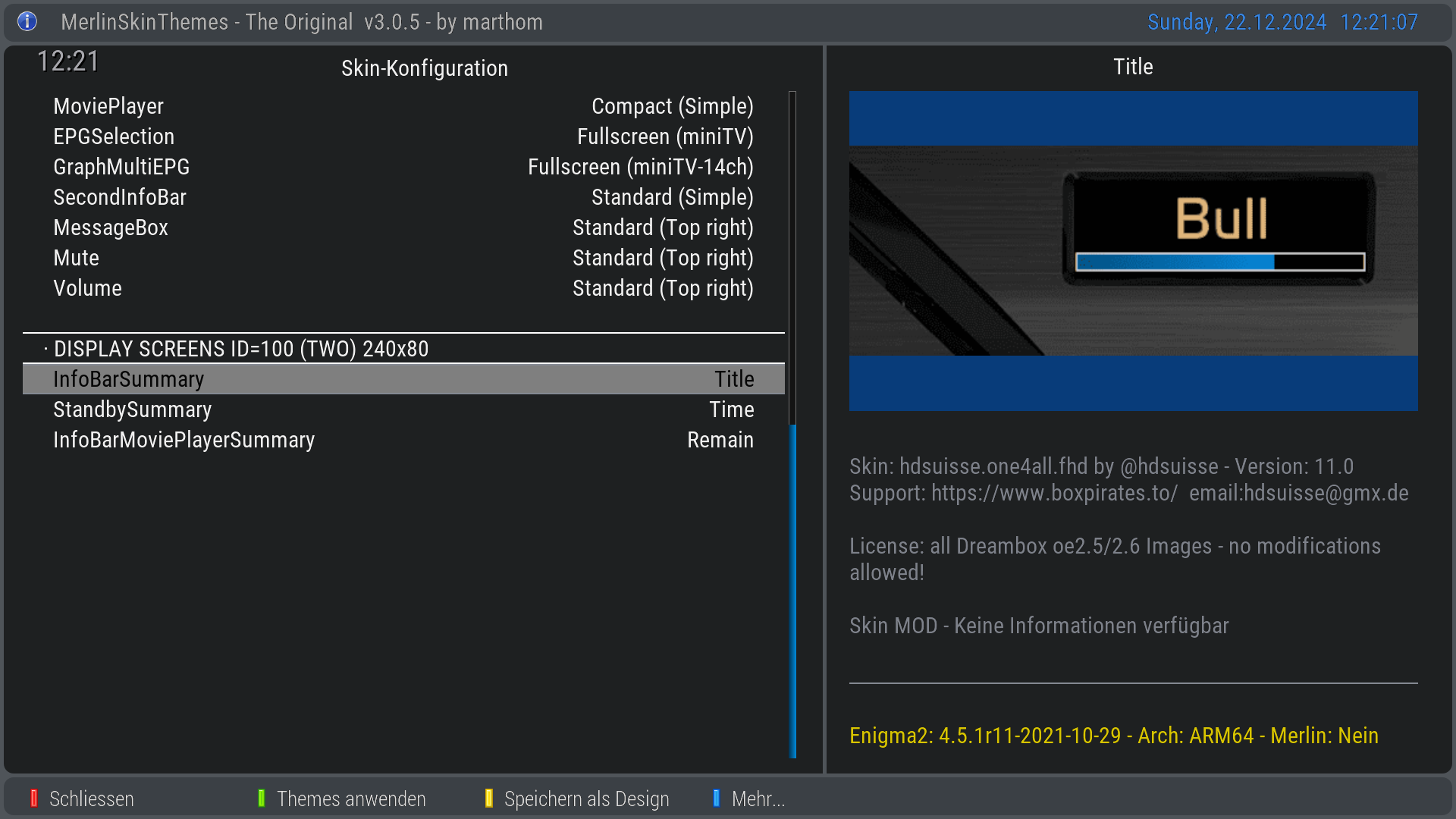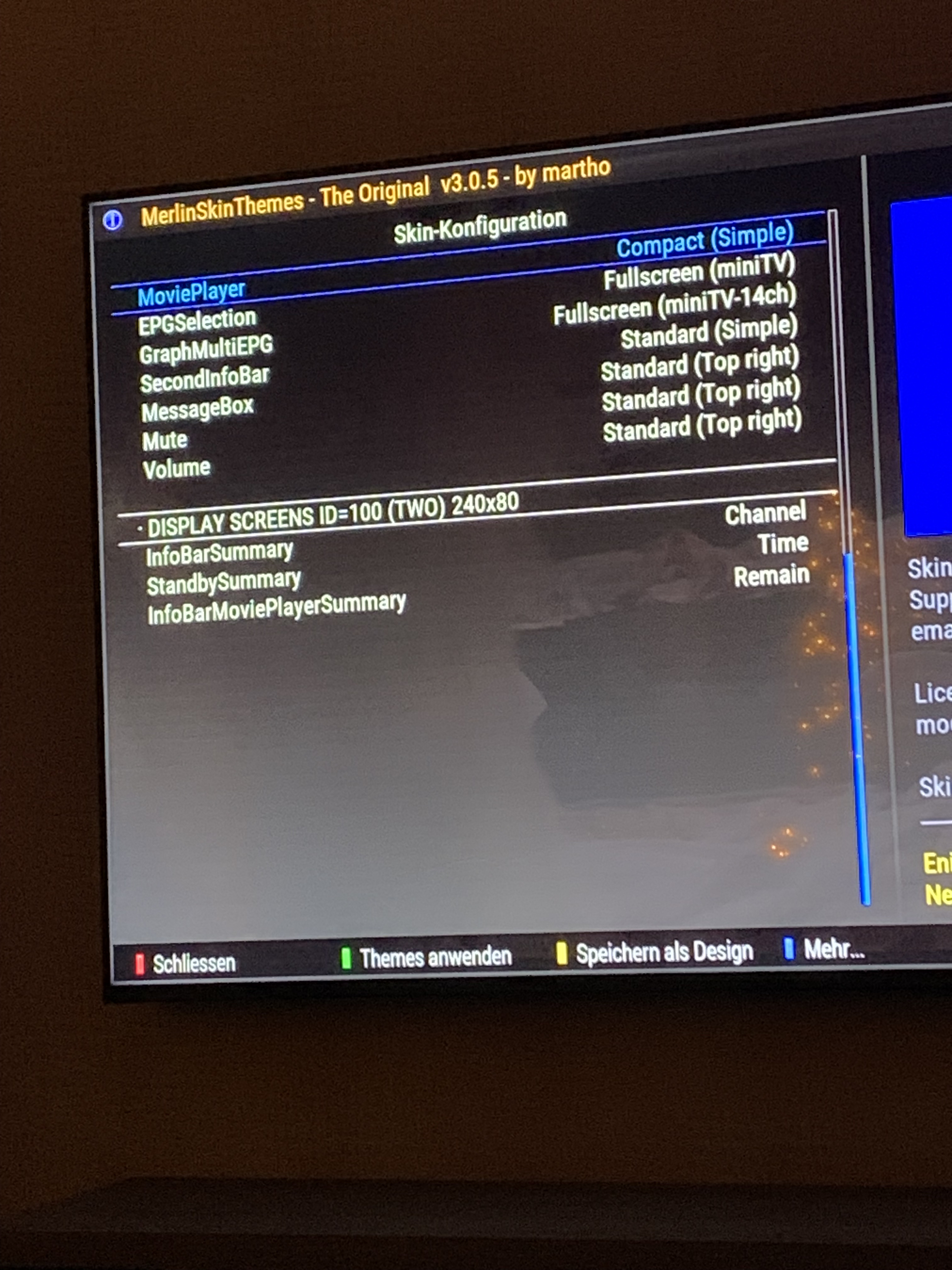 Ich nutze aktuell den hdsuisse fhd und würde gerne beim z.B. sehen den Sender mit dem Laufzeit Balken einstellen und im Idle und standby gerne die Uhrzeit in weiß.