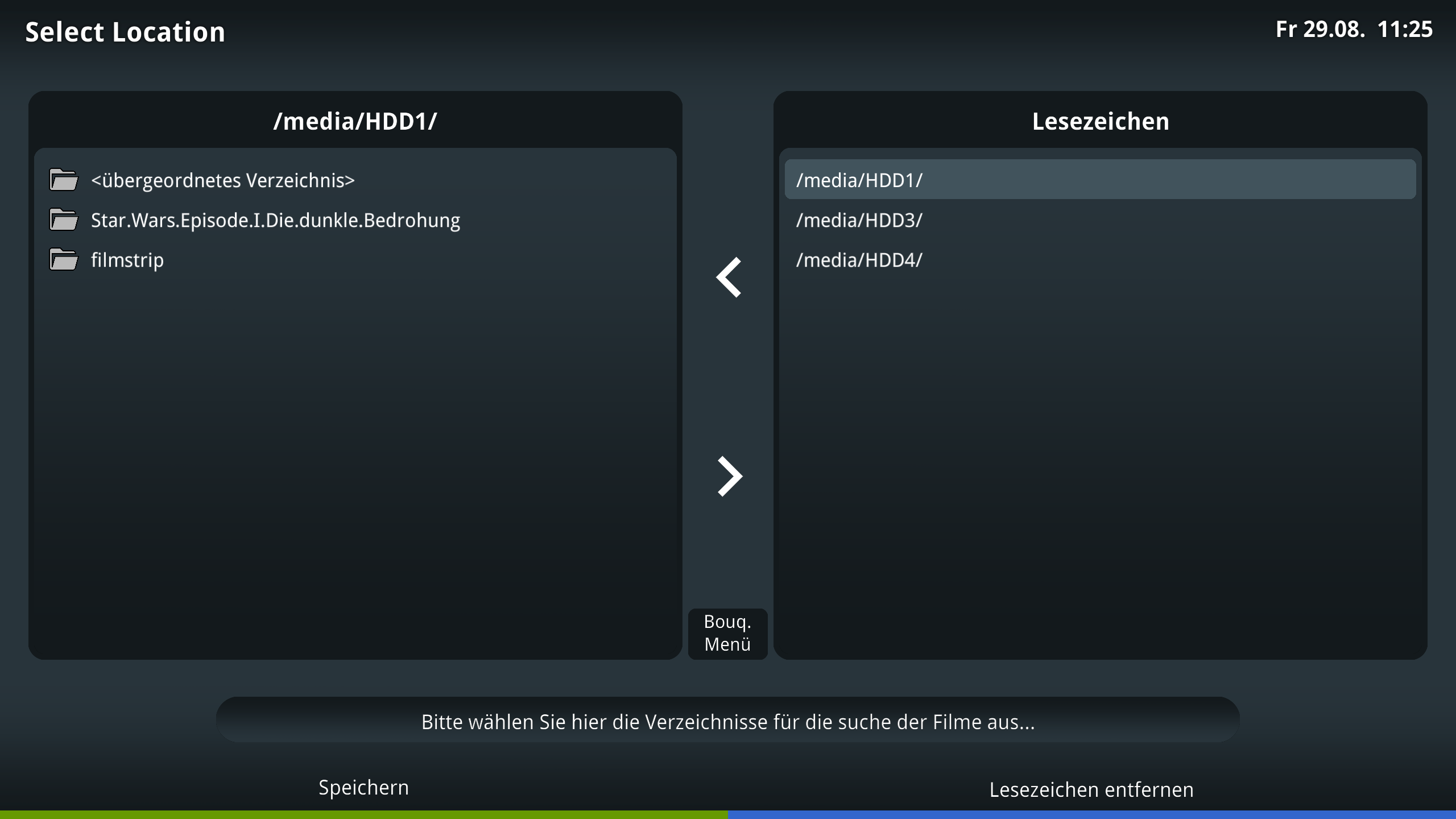 In meinem Beispiel liegen die Filmdateien in dem mount /media/Filme_Dreambox und die Mehrteiler in dem mount /media/Filme_Mehrteiler und sollen alle zusammen in dem Verzeichnis /media/Filma angezeigt werden.