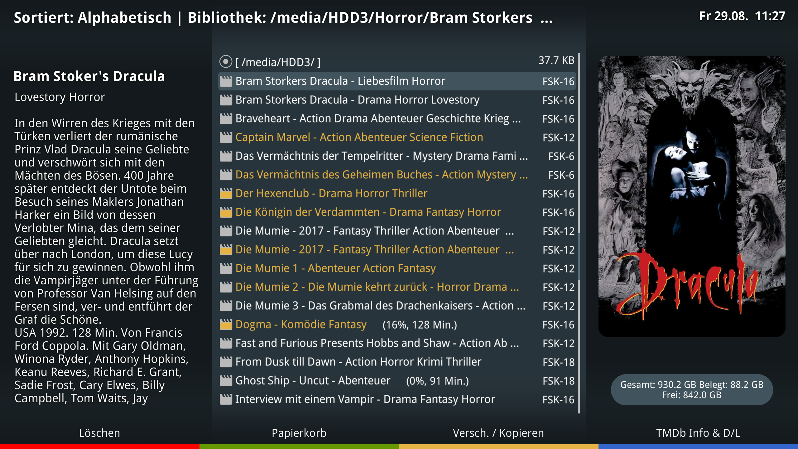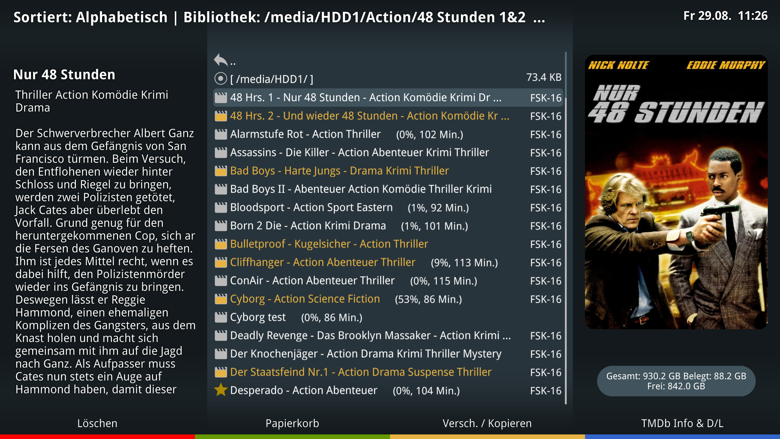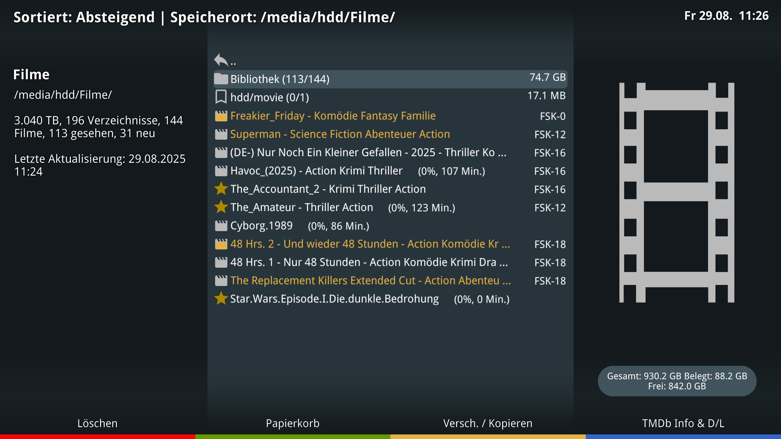 Man muss also weder extra Verzeichnisse mounten noch in Ordner navigieren ,einfach nur den Film aussuchen in der Movieliste und starten.