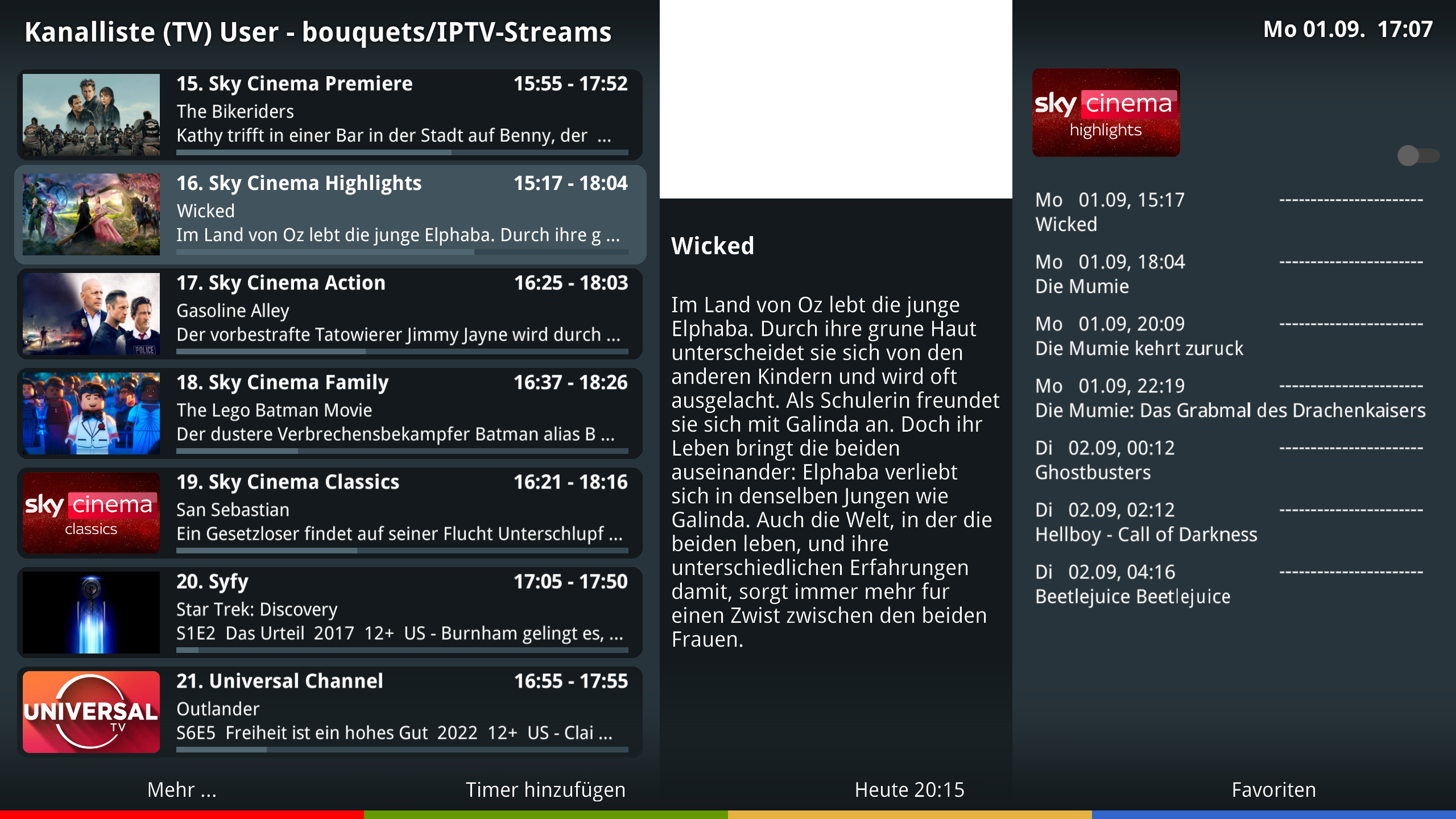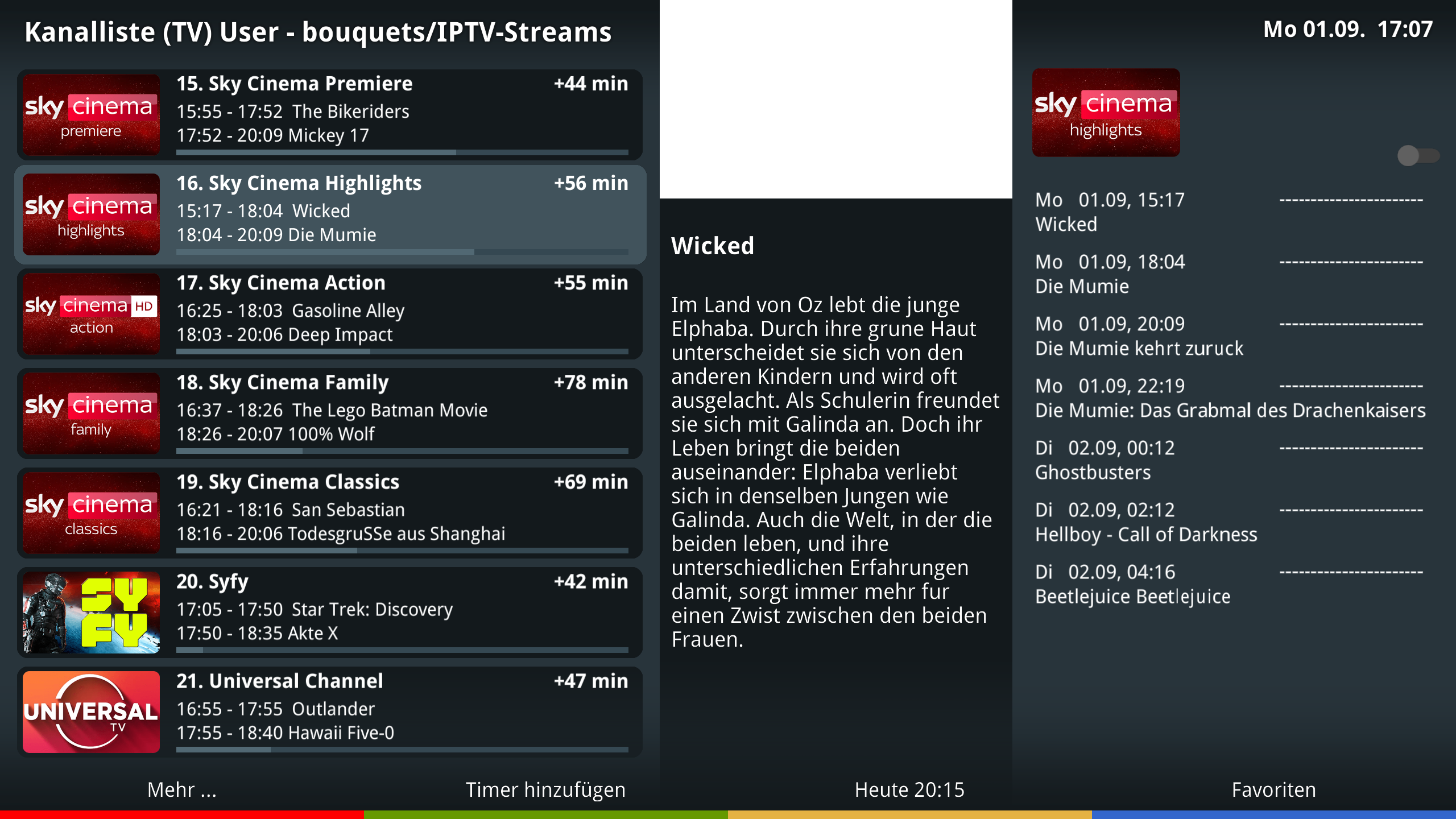 Mit dem Wissen vorweg geht es mir hauptsächlich um die Ansicht auf Bild 6. Alles was ich dazu bisher gefunden habe - egal ob vali oder auch MultiEPG - fand ich optisch bzw. von der Bedienung her eine Katastropfe. Dein Skin und die Ansichten sind allerdings sehr schön. Mein Problem ist nur, dass ich auch a) meine Technikunbegabte Frau davon überzeugen müsste und b) den Skin auch für meine alten DM7020HD brauche, da ich nicht auf zwei Boxen unterschiedliche Skins laufen haben will.