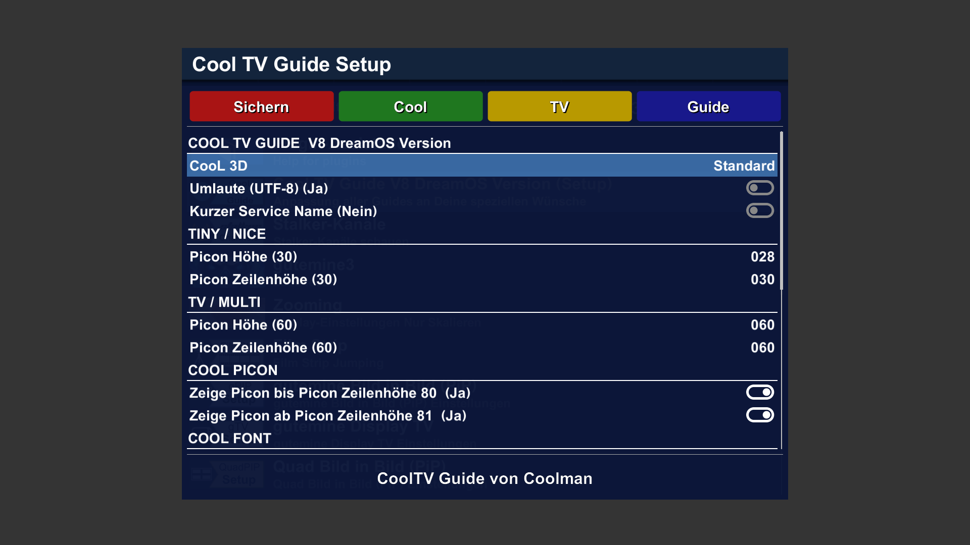 • Für DreamOS gibt es keine CoolTV Version ,Coolmann hat dafür keine mehr gebaut.
