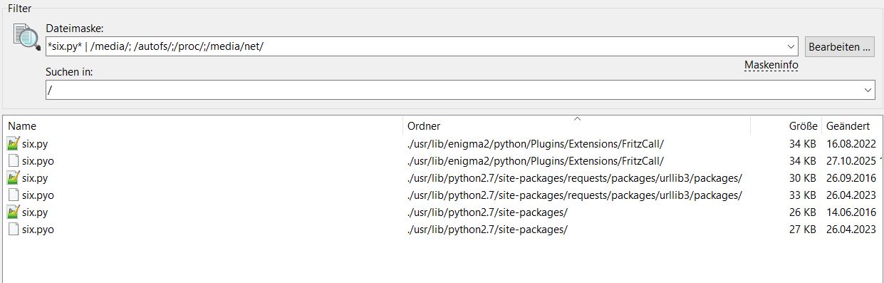 Auf der 920 habe ich python-six 1.15.0, auf der 7020 python-six 1.7.3-r1. Ich vermute jetzt einfach mal, dass das das Problem sein könnte.