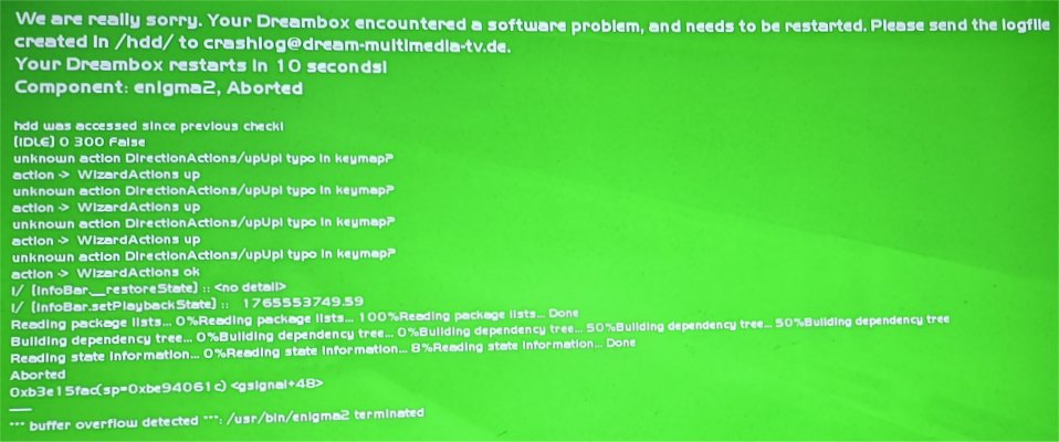 NMun habe ich Backups vom 23.11.2025, 18.11.2025 und 21.09.2025 und sogar vom 19.05.2025 eingespielt und jedes Mal wird bei Menü - Erweiterungen - rote Taste oder blau - Paketmanager die Box ohne GS neu gebootet.