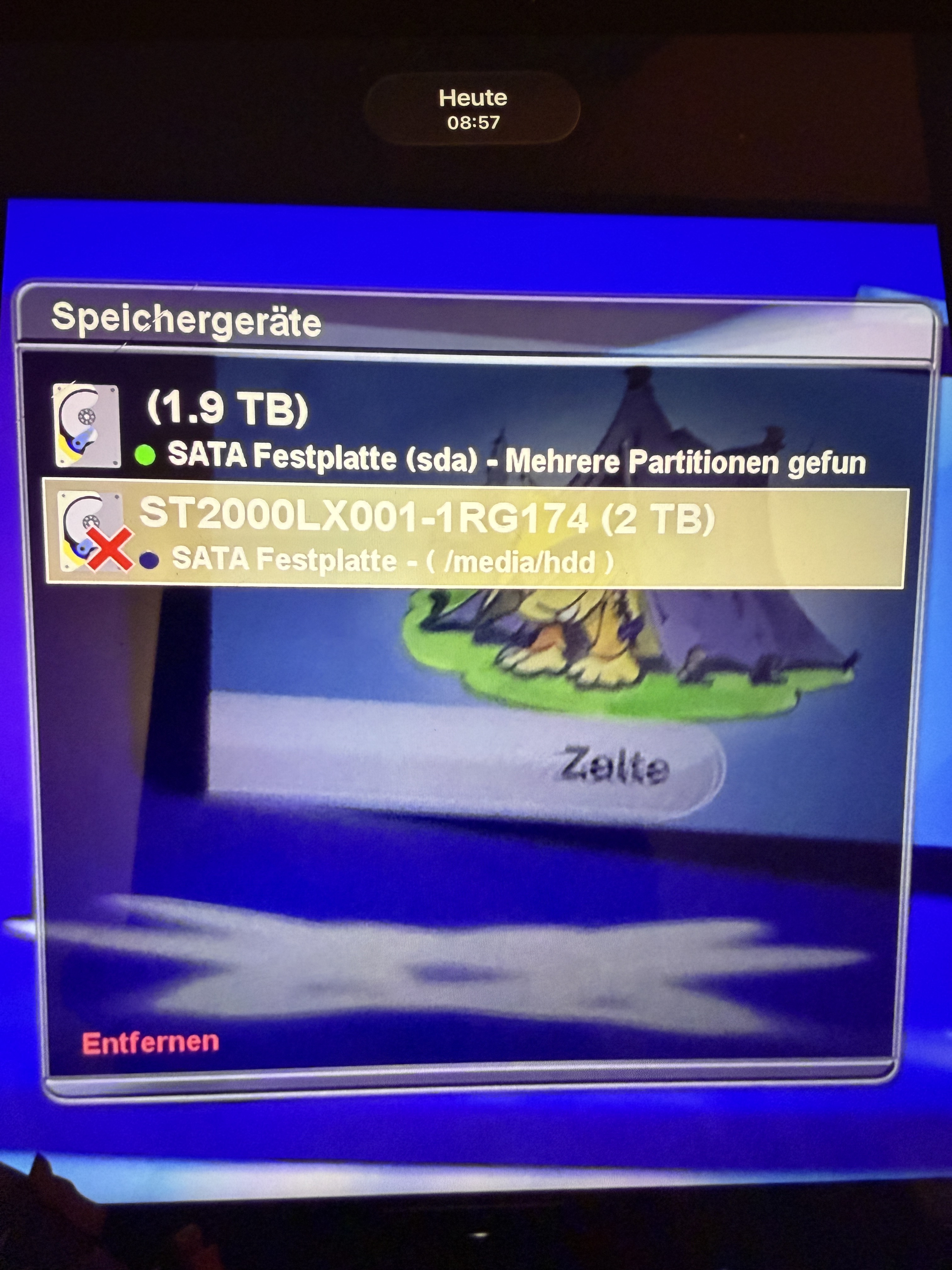 Hallo bei meiner Dreambox, wird meine seit Jahren gut funktionierte Festplatte irgendwie nicht mehr richtig erkannt. Es wird noch eine Festplatte in Einstellungen Geräte angezeigt, mit zwei Terabyte aber im Menü steht dran, dass ich die löschen soll. Und es gibt dort eine neue Festplatte zum initialisieren aber, die neue Festplatte hat keinen Namen. Im Aufnahmepfad Movie erscheint gar nichts mehr. Also den sehe ich auch gar nicht, wenn ich ihn auswählen will. Es sind auch keine Filme vorhanden. Können wir da irgendjemand weiterhelfen wie ich rausfinden ob ich die alte Platte noch irgendwie wieder ans Leben bekommen.?