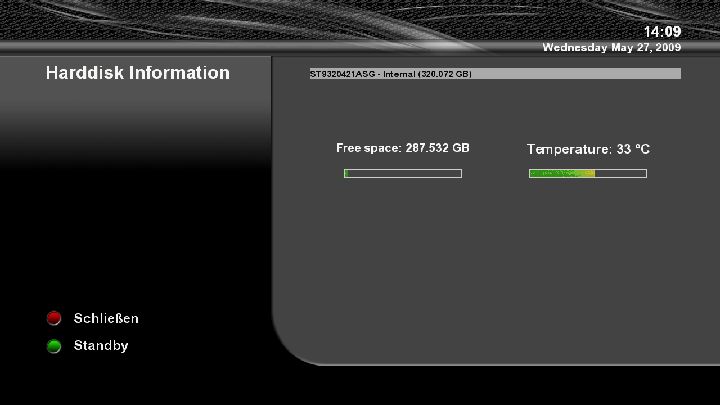 HDD-Temperatur im Standby mit v2.5.1 bei ca. 42 Grad, im Betrieb (Aufnahme/Wiedergabe) bie ca. 47 Grad - Oberflächentemperatur über dem Tuner: "handwarm"Dieser Beitrag wurde bereits 5 mal editiert, zuletzt von Fred Bogus Trumper ()