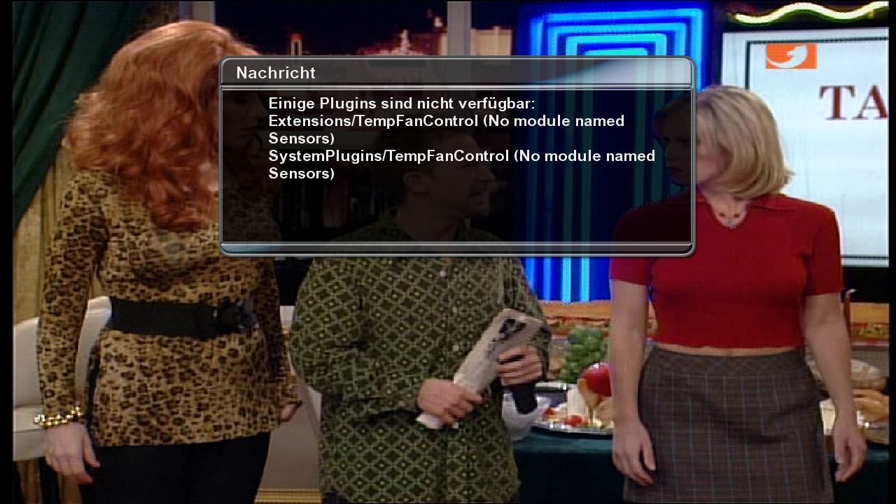 Wenn ich nach dem Restart der Box die Erweiterungen aufrufe ist folgende Nachricht auf dem Bildschirm zu erkennen (nur einmal):