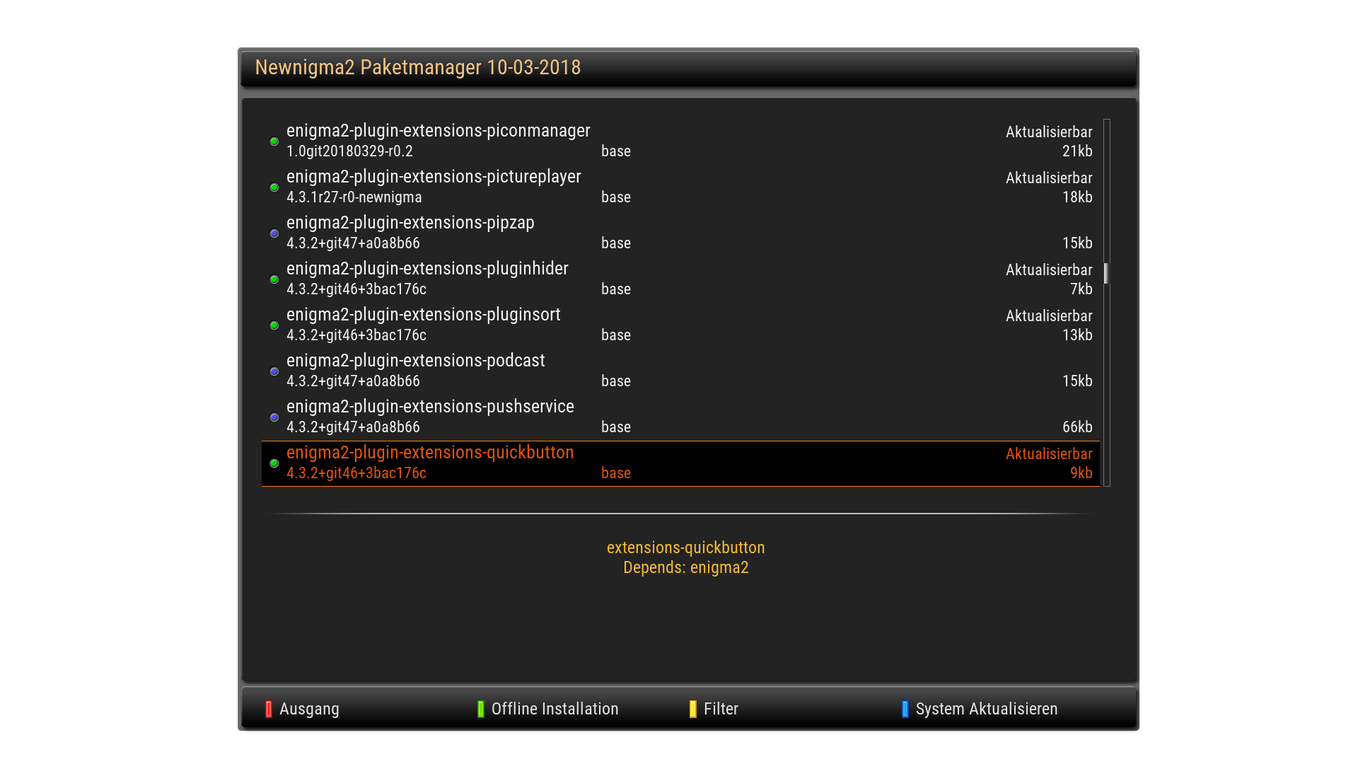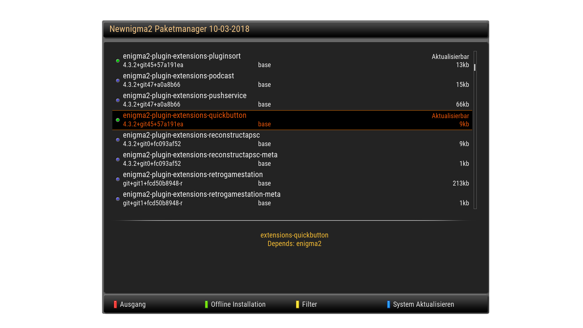 Ich hab die blaue Taste gedrückt und bin auf Paketmanager gegangen und hab das "System aktuallisiert".