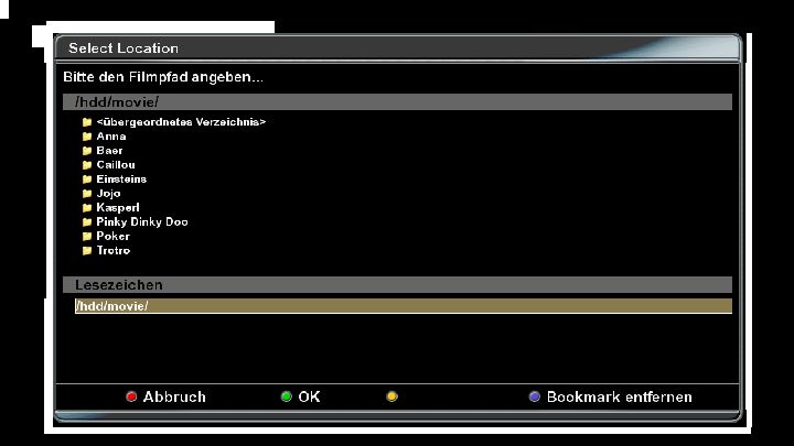 Unter "Movies" gibt es ein "Movie Location"-Pulldown, dort kann ich nur "/hdd/movie" auswählen.