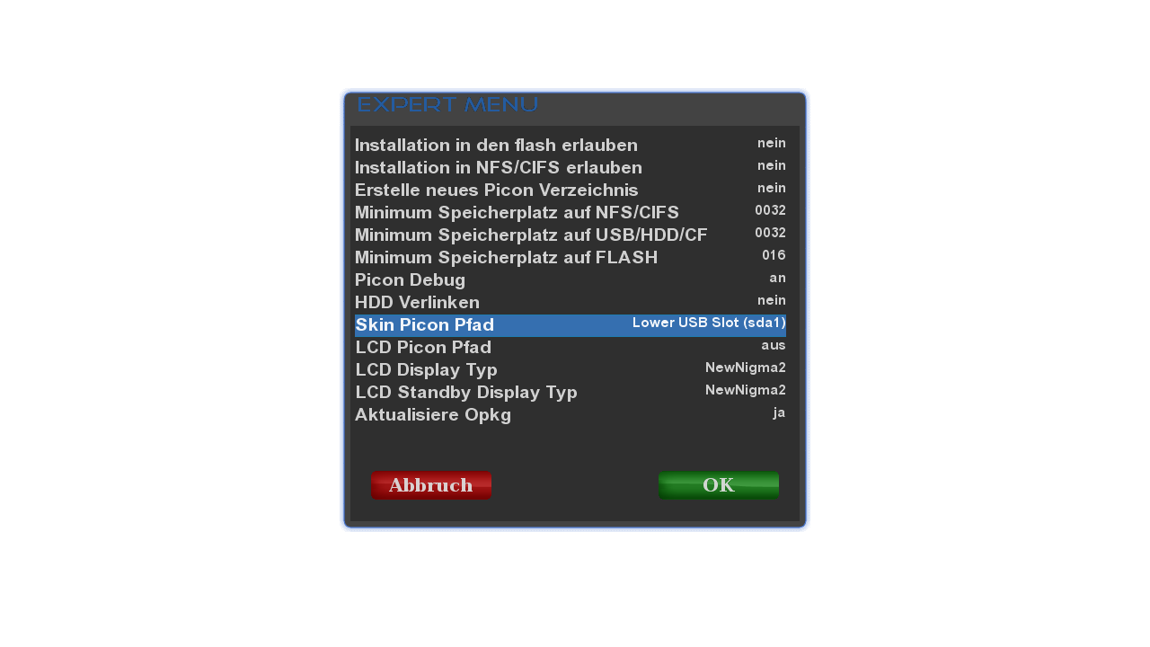 Dort kann z.B. die Installtion in den Flash erlaubt werden oder sogar die Aktivierung des Picondebug (fehlende Picon werden dann in eine