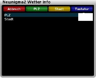 Stadt eingeben und "gelb" für Stadt drücken. Ansonsten PLZ eingeben und "grün" drücken.