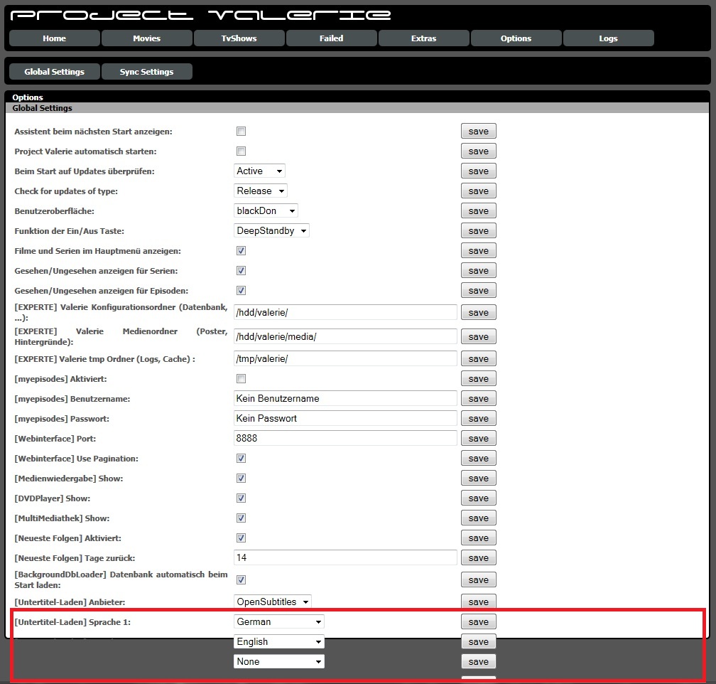 • Im Webinterface unter dem Punkt Options -> Global Settings ist die Ansicht unvollständig. Getestet mit Firefox 6.0 und IE 9.0.8112 in Version r963. Zwar auch nur Kosmetik, aber dennoch.... anbei der Screenshot!