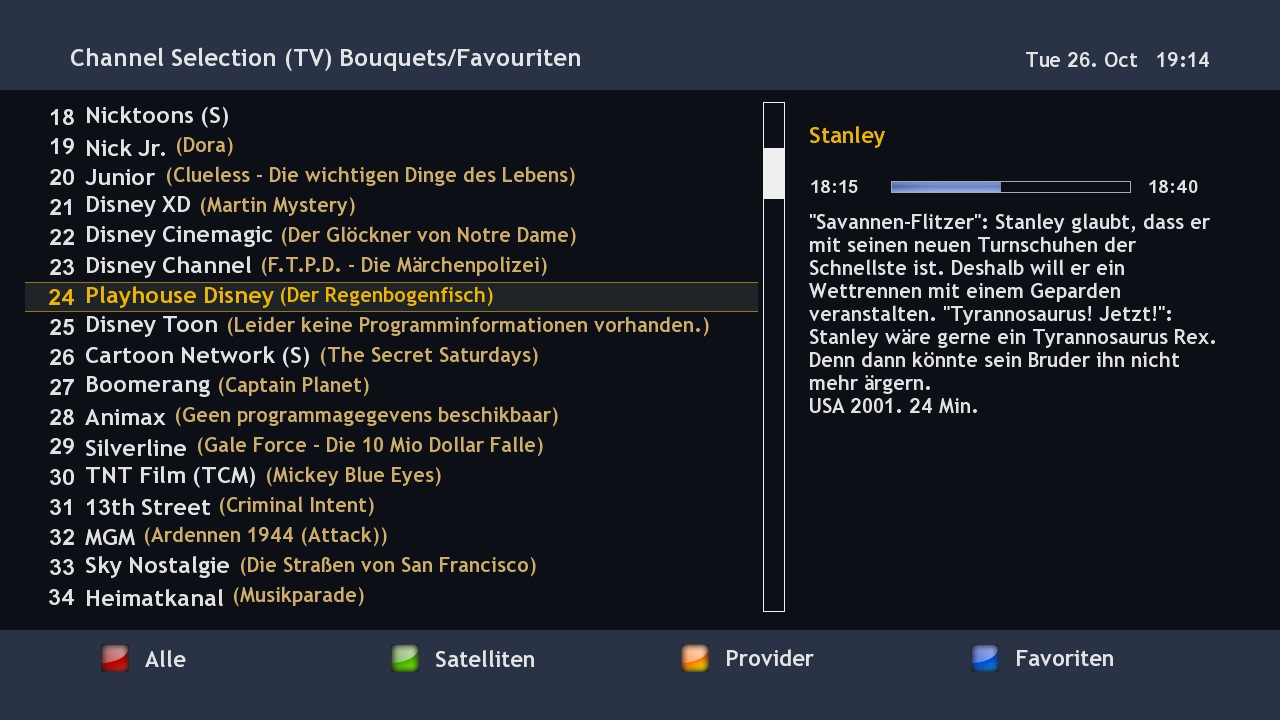 wow - der skin ist um einiges schneller als der DMConcinnity-HD auf der DM800 und sieht gar nicht mal so schlecht aus. Einzig das Blue Panel ist zu klein geraten: Full screen und nur 5 oder 6 Einträge. Da kann man ewig scrollen ...