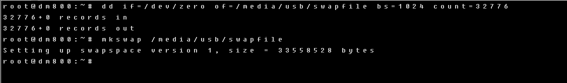 dd if=/dev/zero of=/media/usb/swapfile bs=1024 count=32776
